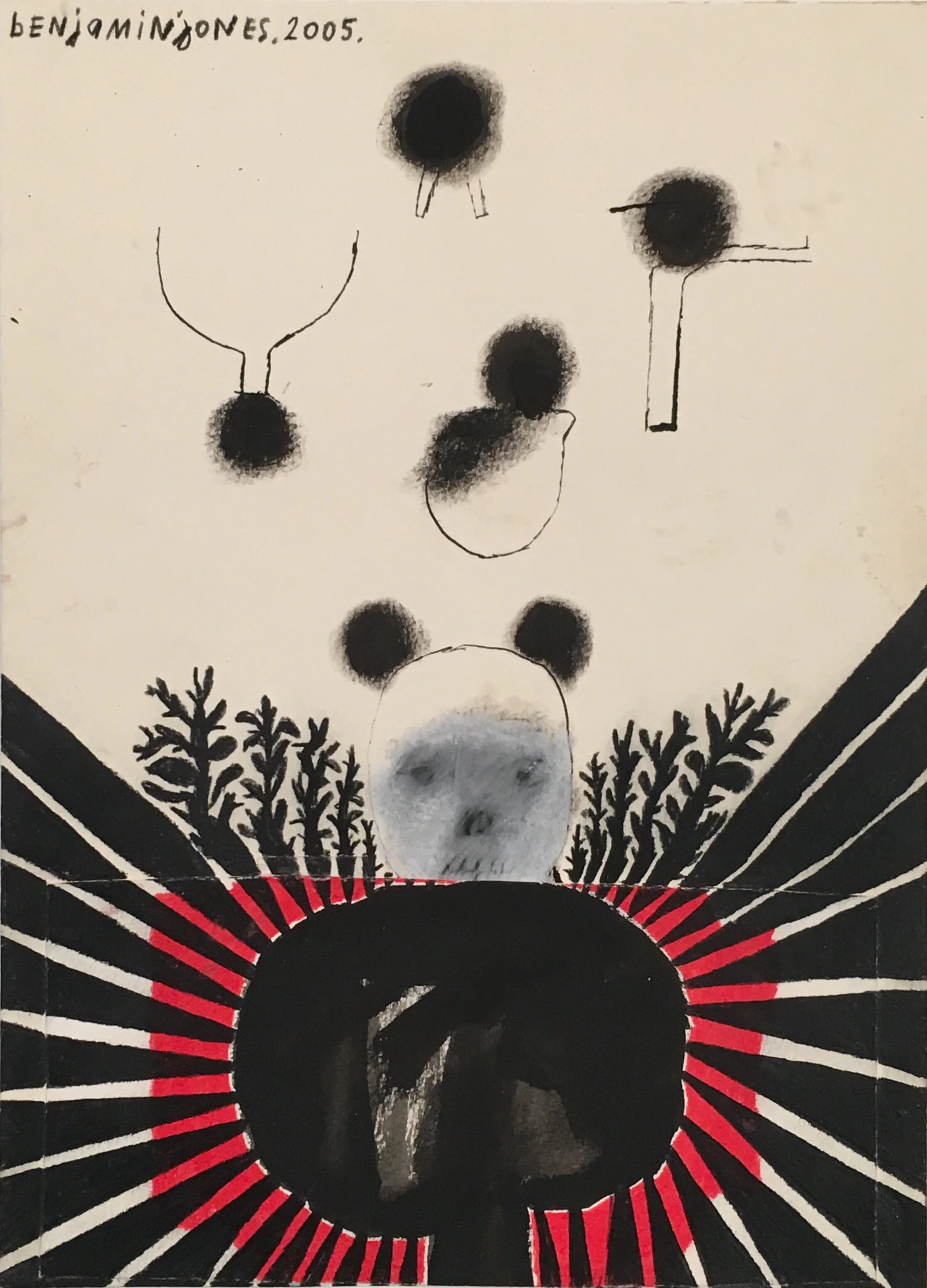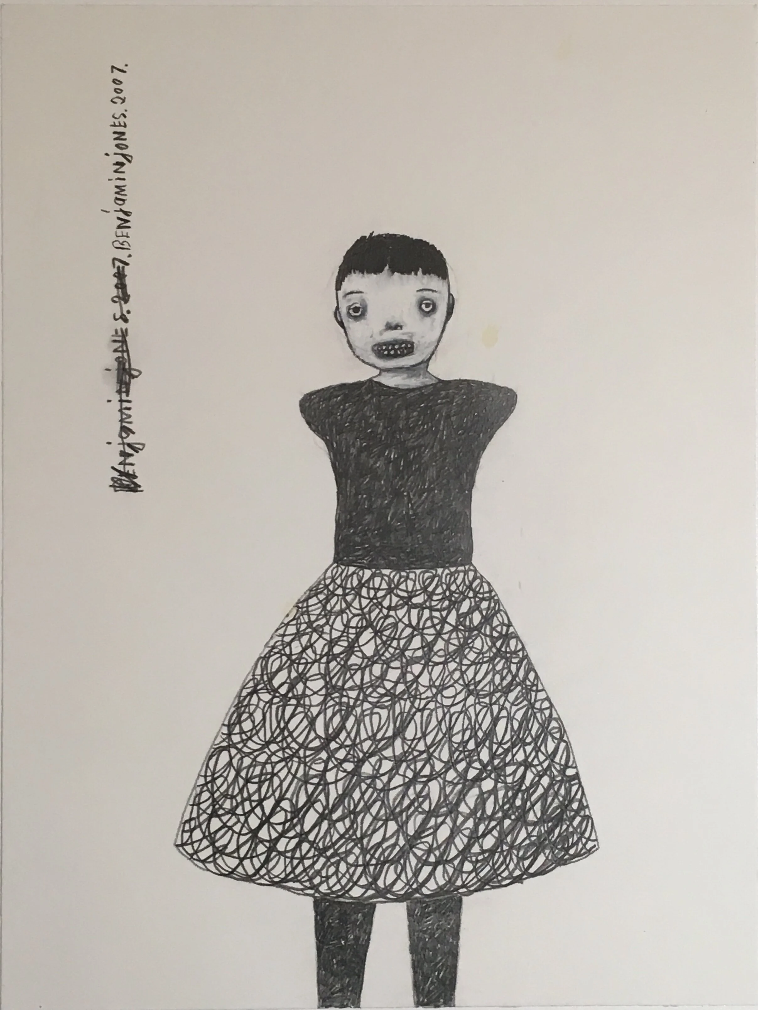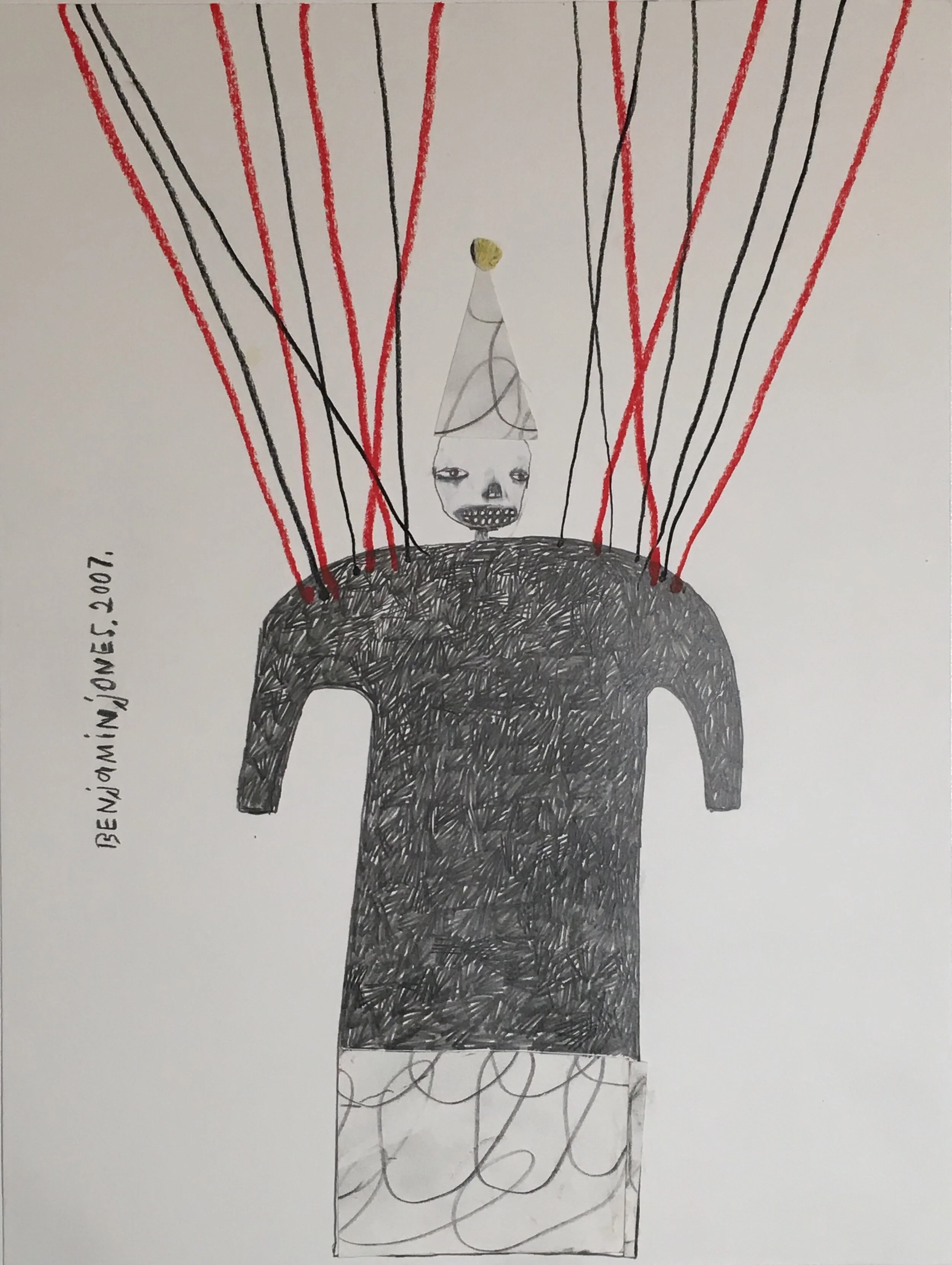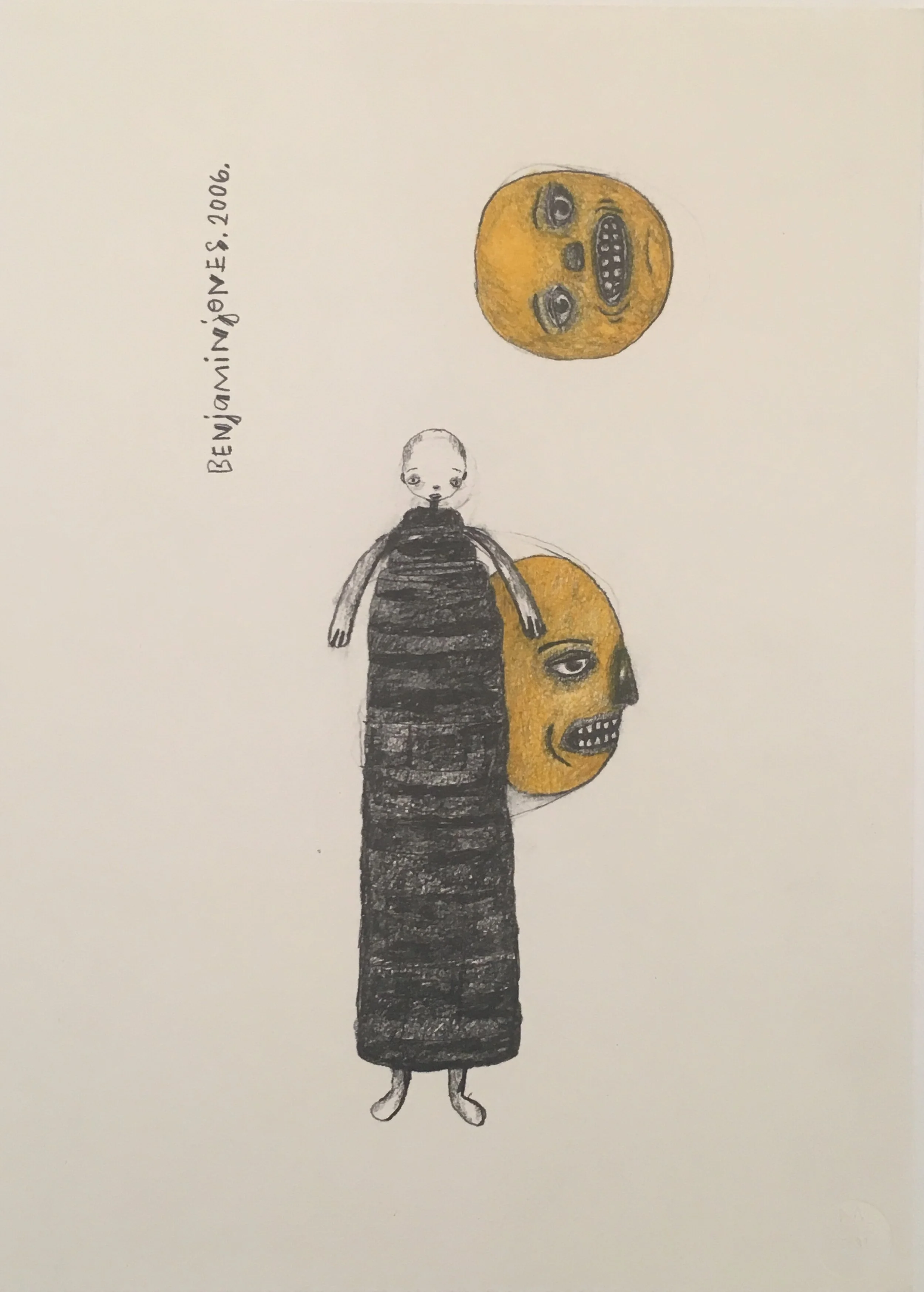 Mixing whimsy with horror, humor with malevolence, Jones’ figures send messages about the struggle of life and all its paradoxes. These seductive and intimate drawings, paradoxical in themselves, create a tension between the purity of their intuition and the refinement of their presentation.